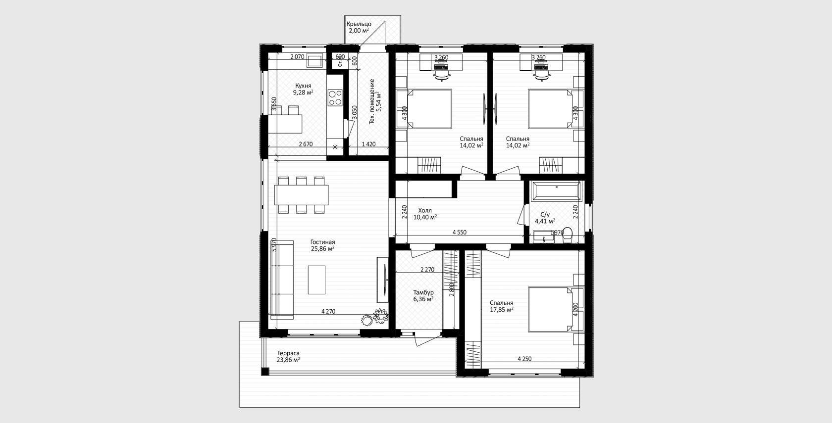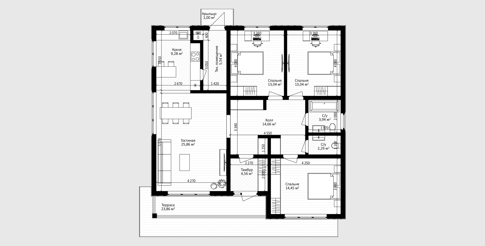 3 спальни
