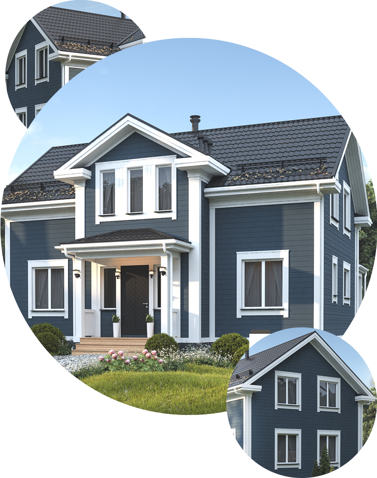 Внешняя отделка дома выполняется под ключ - с итоговой покраской. Устанавливаются окна: двухкамерный стеклопакет со всеми режимами открывания. Также устанавливаются крыльцо вместе с лестницей и утепленная входная дверь.
