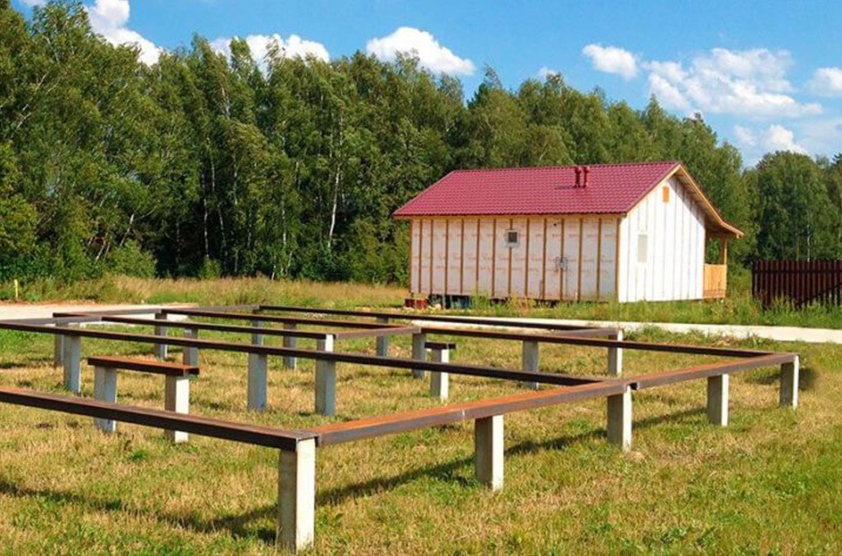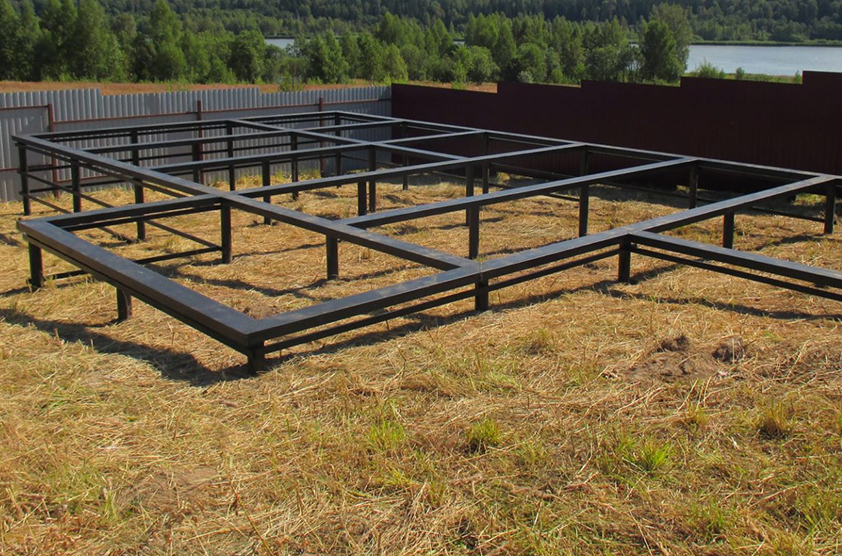 металлические винтовые сваи с обвязкой из металлопрофиля