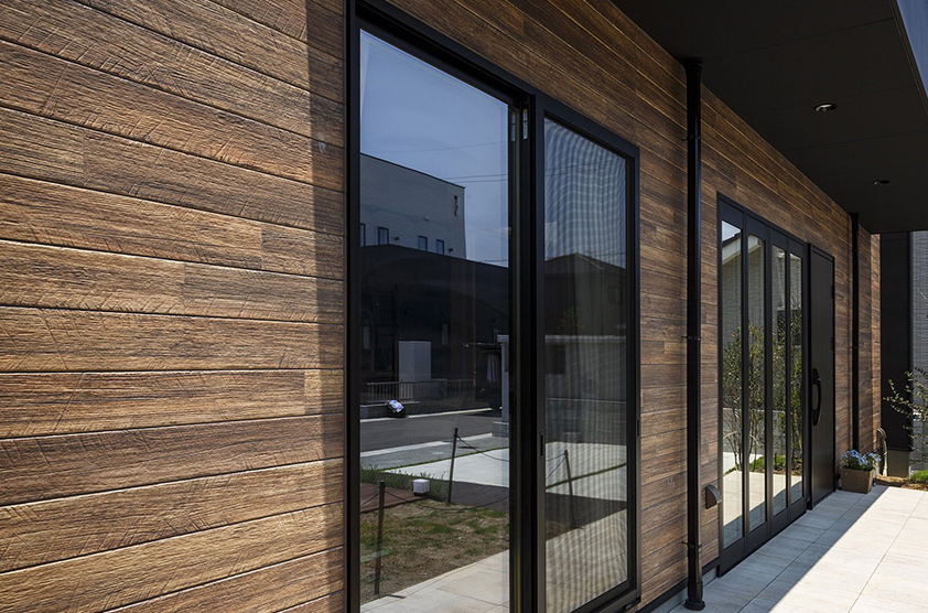 Чаще всего для доски делаются из сосны или лиственницы, - но могут использоваться также дуб, ясень или кедр. У досок нет шипа и паза, они по отдельности набираются на обрешетку. В результате фасад не выглядит сплошным, - имеющийся зазор между элементами не превышает 5 мм. Планкен бывает прямой, скошенной и клиновидной формы. С точки зрения влагопроницаемости и эстетики наиболее выигрышными являются скошенный (доски укладываются внахлест) и клиновидный (доски укладываются как «чешуя») варианты.