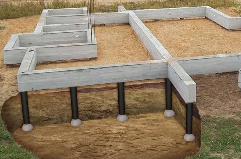 Существуют несколько видом такого фундамента: сборный, состоящий из свай, армированных сварным каркасом (для его установки нужен кран); монолитно-железобетонный (заливается на стройплощадке); сборно-монолитный (смешанный вариант). При выборе свайно-ростверкового фундамента надо учитывать, что подходит для зданий не выше двух этажей, есть определенные сложности с оборудованием цокольного этажа, для монтажных работ нужна спецтехника. И, конечно, важны точные расчеты при проектировании.